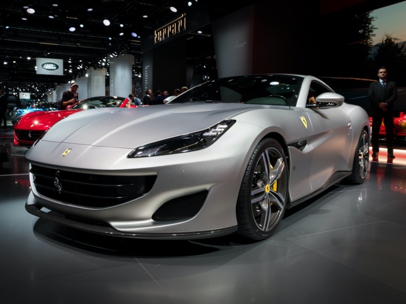 ポルトフィーノはカリフォルニアTの後継車として2017年に登場しました。FRのフェラーリらしいスタイリングをしており、物珍しさは感じないかもしれません。しかし、車幅は1938mmと意外に大きく、実際に見るとスタイリッシュながら迫力のあるデザインです。また、先代のカリフォルニアTと同じ2+2のシートを採用しているため、狭いながらも乗車人数は4人と実用性の高いモデルでもあります。エンジンにも抜かりはなく、V型8気筒・3.9Lターボを搭載し、最高出力は600psを発生させます。このエンジンはカリフォルニアTと同じベースであるものの、ピストンやコンロッドは新型になり、各部を変更することで出力を高めています。また、電動のハードトップを採用しているため、スイッチひとつでルーフの開閉も可能です。気軽にオープン走行を楽しめるのもポルトフィーノの良さでしょう。